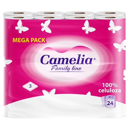 Camelia Three-Layer – perfumed variant in distinctive red packaging. Premium quality with an intense fresh scent.
