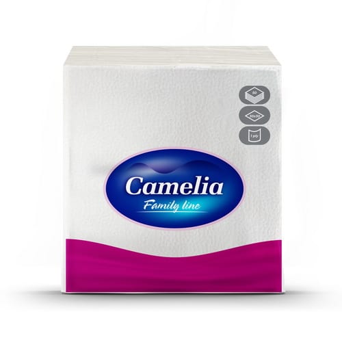 Camelia papirne salvete u pakovanju od 75 komada. Dostupne u dimenzijama 33x33 cm i 30x30 cm.